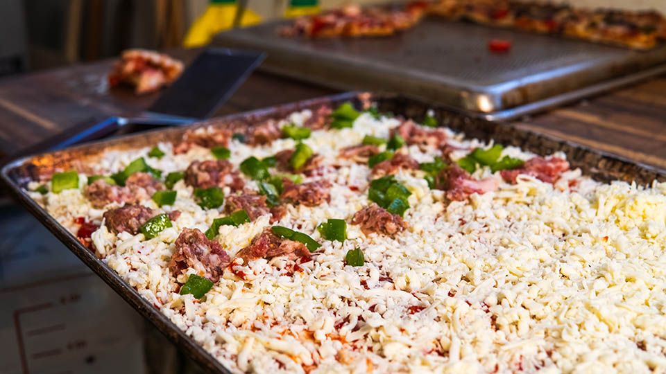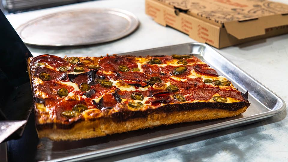 Introducing our version of the "Detroit Meets Rustic Style" Pizza with a crispy outside and a soft, chewy inside.